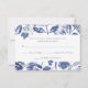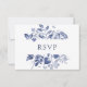 Cette belle et élégante carte de réponse mariage botanique présente des feuilles d'encre bleue tendance sur un arrière - plan blanc.