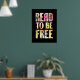Livres et affiche de lecture Lire pour être gratuit avec des lettres remplies d'aquarelle sur arrière - plan noir fait un joli décor de mur pour la bibliothèque maison, la salle pour enfants, la classe de l'école, groupe d'alphabétisation, ou la bibliothèque. Insistez sur l'importance de la lecture avec un poster amusant et coloré.