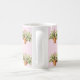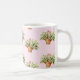 La tasse chic de cottage comporte les paniers en osier des fleurs du muguet sur un arrière - plan rose et blanc de point de polka.