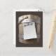 Ein Vintager Holzbügel mit Metallringhalterungen und einem Griff und einem leeren Papier, das an der Vorderseite mit der Wortzählerliste angebracht ist