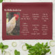 Dieses Küchentuch ist auf Burgundy Red ausgestellt und hat Fotos eines Rhode Island White Huhn Hahn Hahn. Der Text der Eimerliste besteht aus mehreren witzigen/humorvollen Anweisungen, die ein Hahn auf einer Eimerliste machen kann. Passen Sie dieses Objekt an oder kaufen Sie es wie gezeigt. Archivbild www.freepik.com