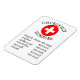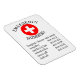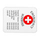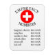 Dieser benutzerdefinierte Magnet enthält eine hilfreiche Liste von Notrufnummern. Oben ist ein großes rot-weißes medizinisches Kreuz gedruckt. Eine Liste mit Namen und Telefonnummern wird unten auf einem weißen Hintergrund gedruckt.