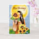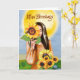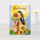 Envoyez un sourire à vos Amours avec ce Solstice d'été Litha Colorful et brillant Sunflower Girl Sabbat design avec une magnifique femme aquarelle avec cheveux brun foncé et chemise orange tenant des tournesols jaunes et un soleil brillant. Ajoutez votre texte personnalisé à cette conception pour dire ce que vous voulez dans un modèle facile à modifier.