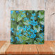 Keramik Kachel, die ein Foto von den winzigen blauen Blumen und verschiedenen Blätter der Brunnera Jack Frost Pflanze zeigt. Ein schönes, blumengeschmücktes Design! Wählen Sie Ihre Kachelgröße aus. Eine tolle Küche trivet!