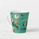 "Little BOO is due" Kinderdusche Wasserfarbe Latte Tasse mit leuchtenden Kürbissen. Die Abbildung zeigt niedliche Gespenster in Orange, Schwarz und Weiß, freche Kürbislaterne Kürbis in Orange, Blau und Grün, Ballon, Kerze, Fledermäuse, Spinnennetz und Sterne. Die Rückseite hat ein passendes Thema. "Ein kleines BOO ist fast fällig" kann mit Ihrer Wahl von Stil, Skript und Wörtern angepasst werden. Eine skurrile kalkartige Tasse zu Halloween-Themen mit dunkelkorallengrünem Hintergrund für das unheimliche Halloween-Party.
