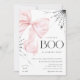 Diese niedliche und spukhafte Babydusche lädt mit einer wunderschönen Aquarellbildervorführung eines rosa Bogen- und Spinnennetzes zum Feiern der anstehenden Ankunft eines kleinen in der Halloween-Saison ein.
