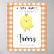 "Ein kleines Huhn ist unterwegs". Feiern Sie mit diesem Cartoon-Hähnchengewächse Baby-Dusche-Party! Wasserfarbenes niedliches Küken mit Babygesicht. Orangefarbener Käfig