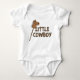 Das Design eines Hemdes hat ein Spielzeugpferd mit dem Satz "Kleiner Cowboy".