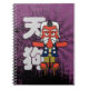 Das trendige, lila und schwarze Cover auf diesem Notizbuch enthält einen Cartoon, der von einem Daitengu zeichne, einem der Yokai-Monster aus der Mythologie Japans. Der Daitengu ist eine der beiden Arten von Tigu und bekannt für seine lange Nase und rote Haut. Obwohl Tigu bösartig sein kann, ist dieser eher bezaubernd. Die großen Kanji im Hintergrund sagen "Tengu" auf Japanisch.