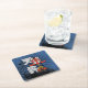 Dieses Set mit blauen und schwarzen Untersetzer zeigt einen Cartoon, der von einem Daitengu zeichne, einem der Yokai-Monster aus der Mythologie Japans. Der Daitengu ist eine der beiden Arten von Tigu und wird durch seine lange Nase und rote Haut leicht erkannt. Obwohl Tigu bösartig sein kann, ist dieser niedlich. Die großen Kanji im Hintergrund sagen "Tengu" auf Japanisch.