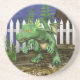 3D digitale Darstellung eines kleinen Drachen auf blauem Nachthimmel und grünem Pflanze Hintergrund. Perfektes Geschenk für alle, die Fantasie und Märchen Lieben