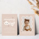 Boho Einladung zum ersten Geburtstag mit einem bezaubernden Kawaii Bao Dumpling ergänzt durch eine neutrale Farbpalette und Retro Typografie.