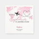 Dieses Design verfügt über ein abenteuerliches Thema Babydusche "A Little Explorer is Landing Balon" mit einer rosa Aquarellweltkarte und einem niedlichen kleinen Flugzeug auf der Route. Minimalistische und moderne Babydusche.