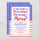 Kleine firecracker patriotische 3. Geburtstagseinladung. Der Hintergrund ist weiß, kann aber an eine Farbe Ihrer Wahl angepasst werden.
