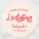 Niedliches Party Dekor Konfetti für ein ladybug Thema Mädchen's 1. Geburtstag Party. Im Text steht "unser kleiner Ladybug".