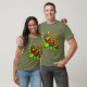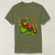 Dieser olivgrüne T - Shirt zeigt eine lebendige Abbildung von drei Ladybugs mit farbenfrohen Muscheln (rote, orangefarbene und schwarze Flecken), die auf hellgrünen und gelben Blätter krabbeln. Kleine gelbe Schmetterlinge und Sternexplosionen sind rund um die Ladybugs verstreut. Der Text "Little Ladybug" ist in einem skurrilen Skript geschrieben. Das Design ist fröhlich und naturgetreu.
