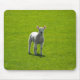 Ein Foto eines weißen Lamms auf einem grünen Feld. In Großbritannien aufgenommen.