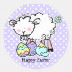 Unser niedliches Lamm-Design ist perfekt für die erste Osterfeier eines Babys. Mit einem bezaubernden Lamm mit farbigen Ostereiern, einem Baby-Küken, das aus einem Ei herausguckt, und einem hübschen Schmetterling. Lila Polka Punkt Hintergrund. Anpassbarer Text, um ihn genau so zu personalisieren, wie Sie ihn gewollt haben. PinkInkArt Original!