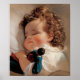 Süße Kleinkinder schlafen mit ihrer Puppe. Kunsthandwerk für Vintage und Nostalgische Liebhaber