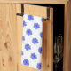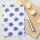 Helles lila Handtuch oder Küchenhandtuch mit einem modernen, blumengeschmückten Print-Designer mit einer Touch von blau und grün auf weiß.