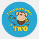 Kleiner Affe 2. Geburtstagskind mit niedlichen Affen mit Banane. Im Text steht, DIESES KLEINE MONKEY IST ZWEI. Geschenke zum zweiten Geburtstag auf Bikes, Babys T - Shirt, Party Einladungen und mehr! PinkInkArt Original!