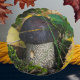 "Die Natur allein ist antike, und die älteste Kunst ein Pilz". - Thomas Carlyle Nature thematied Round Kissen mit einem Foto kleiner Pilze mit gelben Blätter für Waldliebhaber und Futterliebhaber. Es wird besonders gut mit dem Land und rustikalen Stil der Dekoration funktionieren.