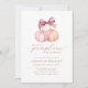 Genießen Sie die Doppelfreude Ihrer Dusche mit unserer kleinen Kürbisdusche. Dieses charmante Design besticht durch zwei kleine Kürbis, die die Zwillinge von Jungen und Mädchen symbolisieren und in einer schönen Aquarellszene eingebettet sind. Mit sanften Farbtönen wie Rosa, Orange, Lila und lila, erweckt die Einladung das Wesen des Herbstes, während ein Coquette Bogen eine reizvolle Touch verleiht. Stilvolle Schrift- und Goldakzente heben die Eleganz hervor und machen diese Einladung zu einem Fest mit blumengeschmückten Wildblumen und zeitloser Schönheit.