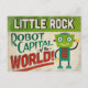 Eine lustige Little Rock Arkansas Vintage Reise-Postkarte mit einem freundlichen Roboter mit lustigem Retro-Stil-Text, der sagt: "Kleiner Rock, Roboter-Hauptstadt der Welt!"