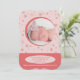 Un doux faire-part de naissance photo pour présenter votre petit. De délicats flocons de neige et une fenêtre photo ronde aux couleurs rose et baies créent le design. (FP)
