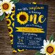 Diese niedlichen Sonnenblumeneinladungen sind perfekt für alle, die diesen Frühling oder Sommer einen ersten Geburtstag feiern. Das Design zeichnet sich durch eine helle Sonnenblume auf einem modernen marineblau-Hintergrund aus, die sich durch eine leicht zu personalisierende Vorlagenfassung auszeichnet.