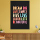 Träumen Sie davon, was Sie gewollt haben, um in der Zukunft zu werden, machen Sie eine Strategie, wie Sie gewollt, um dorthin zu kommen, und dann führen Sie es aus. Aber behalt daran, dass das Leben flüchtig ist; dazwischen, Zeit mit deinen Lieben verbringen, ihnen Zuneigung zeigen, viel lachen und dankbar für das sein, was du hast.