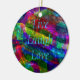 Helle und bunte runde Ornamente in den Hauptfarben Blau, Grün, Rot, Rosa, lila und Gelb. Farben sehen aus wie Wirbel aus Buntglas. "Live-Lagh-Liebe" steht auf der Vorderseite des Ornaments. Rundschmuck für Ihren Weihnachtsbaum, oder anpassen mit jeder Nachricht, die Sie als ganzjährig Dekoration verwenden möchten.