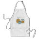 "Live, Liebe, Cook" sagt das stilisierte Drehbuch in blau und gold auf dieser Schürze. Unterhalb des Textes befinden sich Küchenartikel, darunter ein Topf mit Deckel, ein Teekessel, ein Colander-Strainer und ein Whisky.