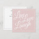 Ideal, um mehrere zur Verfügung zu haben, um immer bereit zu sein, Ihre Grüße zu senden, da manchmal eine allgemeine Karte benötigt, um eine Nachricht oder Grüße zu senden. Klassisch und elegant und vermittelt eine inspirierende Botschaft - Live Liebe Laugh. Fügen Sie Ihre eigene Nachricht auf der Rückseite oder Hand schreiben Sie jede Nachricht später. Weiße, elegante Schrift auf klassischem Soft Pink. Senden Sie mir eine E-Mail, wenn Sie helfen, diese Karte persönlicher zu machen oder wenn Sie Hilfe bei der Übertragung auf ein anderes Produkt benötigen und ich würde Ihnen gerne helfen. designsbykatz@gmail.com