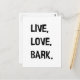 live, Liebe, Rinde, Hund, Paw, Print, Zitat, Hund, Welpe, Tier, Liebhaber, Haustier, Besitzer, niedlich, Text, motivierend, Redewendungen