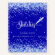 Arrière - plan royal bleu, décoré de poussière de parties scintillant, étincelants et un stylo en plumes. Le titre : Esquisses écrites avec un script de style à la main girly moderne. Lettres de couleur blanche.