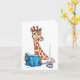 Giraffe lit un livre et boit une boisson chaude en levant les yeux... peut-être pour dire un joyeux anniversaire ? ou penser à vous ? ou bien bientôt ? ou... ? ? ? La carte est vide à l'intérieur. L'oeuvre originale a été créée à la main par Sue Clancy à l'aide d'encre et de gouache.