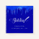 Arrière - plan de couleur bleue royale, décoré avec un look dérapant de peinture et un stylo en plumes. Le titre : Esquisses écrites avec un script de style à la main girly moderne. Lettres de couleur blanche.