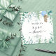 Pour un baby shower élégant et moderne. Un arrière - plan blanc. Décoré de verdure d'eucalyptus, de fougères de bois et d'un ours en peluche tenant un ballon bleu. Personnalisez et ajoutez un nom et une date. Peut être utilisé comme livre d'or ou pour planifier la fête.