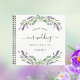 Un élégant arrière - plan blanc décoré de fleurs de lavande et de verdure d'eucalyptus. Personnalisez et ajoutez vos noms et votre date de mariage.