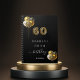 Pour un 60ème anniversaire élégant. Un arrière - plan noir, décoré de ballons. Le numéro 60 est écrit avec une police de style ballon tendance, motif léopard. Personnalisez et ajoutez un nom et une date. Le mot anniversaire est écrit avec un script de style moderne écrit à la main avec des swashes.