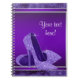 Carnet en spirale à talon élevé avec de jolies chaussures à talon haut violet sur un bel arrière - plan violet et argent. Ce carnet de chaussure violet à talon élevé fonctionne très bien pour un livre d'invité de fête et un enregistreur de cadeaux, donc les cartes de remerciement sont plus faciles. Personnaliser pour votre événement avec du texte dans le style de police de votre choix. Il s'agit d'un design imprimé sans réelle parties scintillant, étincelants, etc.