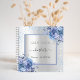 Faux arrière - plan d'apparence argentée décoré de fleurs bleu marine et bleu clair, de fleurs et de faux parties scintillant, scintille. Personnalisez et votre nom et votre date.