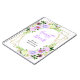Ce livre d'or de mariage élégant et magnifique présente des fleurs et feuillage aquarelles violets sur un cadre géométrique doré. Le texte combine une écriture manuscrite et des polices serif pour un look stylé et moderne. C'est parfait pour un mariage champêtre printanier.