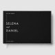 Cet élégant livre d'or mariage noir classique est parfait pour un mariage simple. Le design sobre et élégant présente une typographie de script classique et sophistiquée en feuille d'or. Customisez le couvercle avant et la colonne vertébrale pour y inclure les noms de la mariée et du marié et la date du mariage.