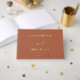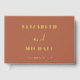 Cet élégant livre d'hôtes mariage en terre cuite présente une véritable feuille d'or, vos noms dans la typographie serif classique, unis par "et" dans un script chic avec des swashes, et votre date mariage. Vous pouvez personnaliser le titre sur la colonne vertébrale.