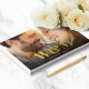Elégant livre d'invités de mariage avec vos photos à l'avant et à l'arrière, superposé avec vos initiales monogrammes dans la grande typographie serif classique, vos prénoms et votre date mariage dans votre choix de feuille d'or véritable or, argent ou rose. Personnalisez votre titre sur le dos.