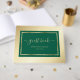 Elégant livre d'hôtes personnalisé vert émeraude et mariage d'or avec script moderne. Personnalisez facilement en ligne. Objets correspondants disponibles pour compléter ce livre d'or mariage vert émeraude moderne. Pour des demandes personnalisées, envoyez-nous un message via Zazzle conversation.