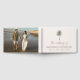Ajoutez une touche tropicale à votre mariage grâce à ce livre d'hôtes Minimal Palm Tree. Le design comprend une illustration de palmier simple en haut du livre d'hôtes avec un arrière - plan ivoire/crème. Personnalisez le livre d'hôtes du mariage de palmiers avec vos noms, date et emplacement en feuille d'or rose avec un script moderne écrit à la main, qui accentue le design. Ajoutez du texte personnalisé à la colonne vertébrale comme vos noms, votre date de mariage, etc. L'arrière du livre d'or rose tropical mariage affiche votre photo fiançailles horizontale préférée. Conçu pour coordonner avec notre collection Minimal Palm Tree mariage.