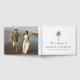 Ajoutez une touche tropicale à votre mariage avec ce livre d'hôtes Minimal Palm Tree. L'aménagement comporte une illustration d'un palmier en haut du livre d'or. Personnalisez le livre d'hôtes du mariage de palmiers avec vos noms, date et emplacement en lettres noires avec un script moderne écrit à la main qui accentue le design. Ajoutez du texte personnalisé à la colonne vertébrale comme vos noms, votre date de mariage, etc. Le dos du simple livre d'hôtes de mariage tropical affiche votre photo de fiançailles horizontal préférée. Conçu pour coordonner avec notre collection Minimal Palm Tree mariage.